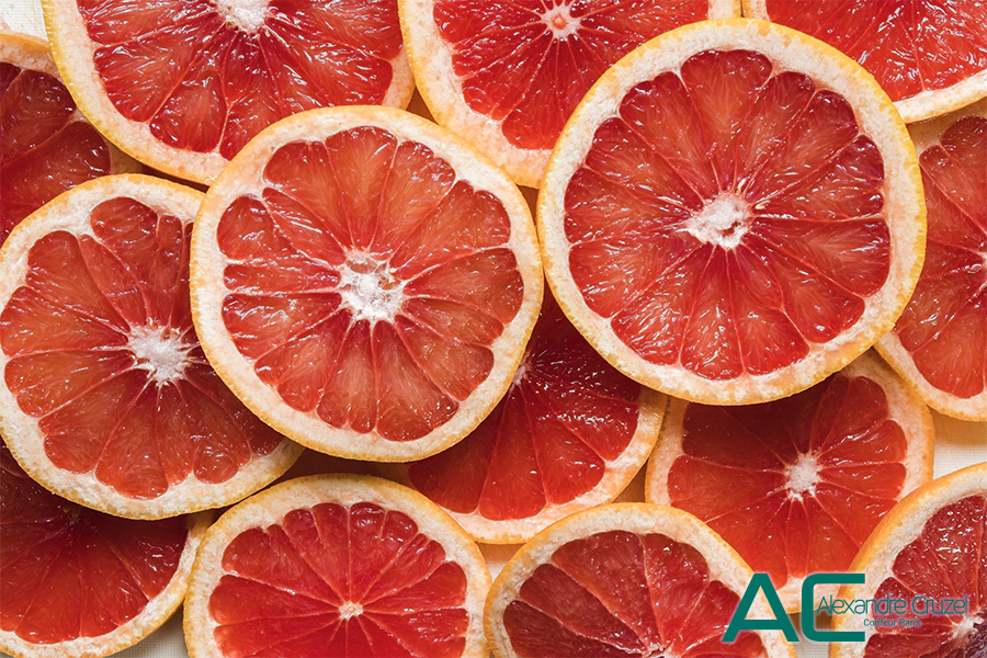 - Détoxifie le cuir chevelu : comme ses cousins agrumes, le pamplemousse possède des vertus astringentes, qui aident à réduire l’excès de sébum au niveau du cuir chevelu.